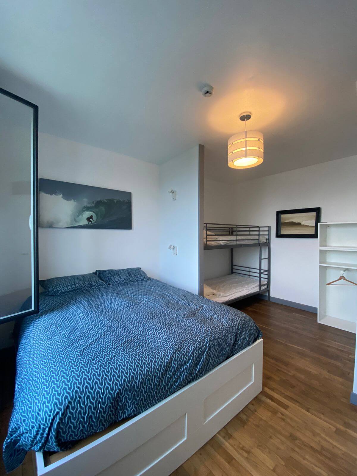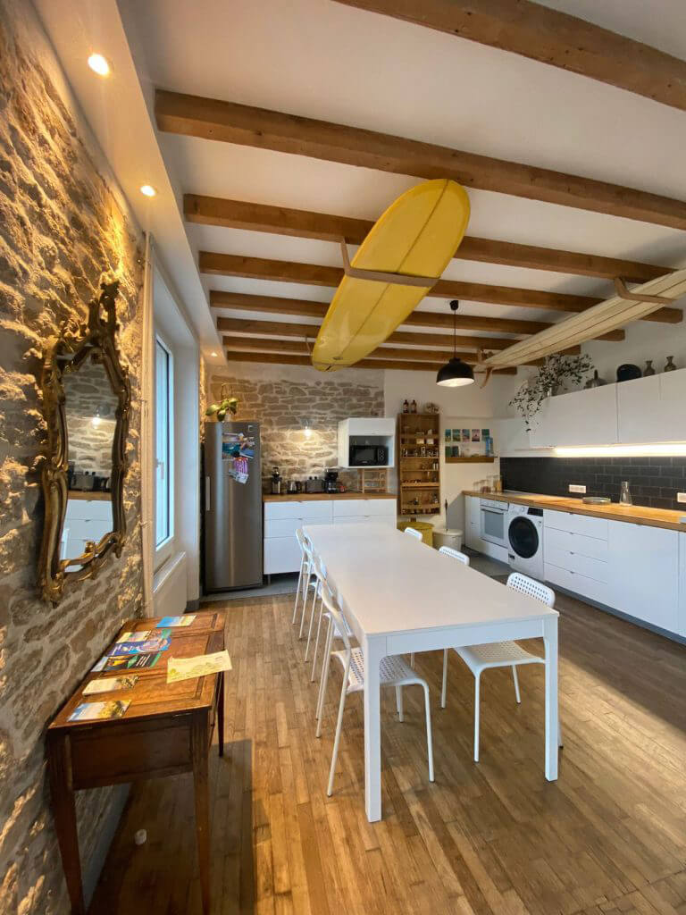 Equipé de tout ce dont vous aurez besoin, ce surfcamp vous plonge dans un esprit surf. L’aménagement et la décoration sont pensés pour vous aider à vous évader. Décorée avec goût c’est une vraie invitation au voyage notamment au travers de grandes photographies de spots de surf bretons et d’ailleurs, du photographe Jérome Chobeaux.