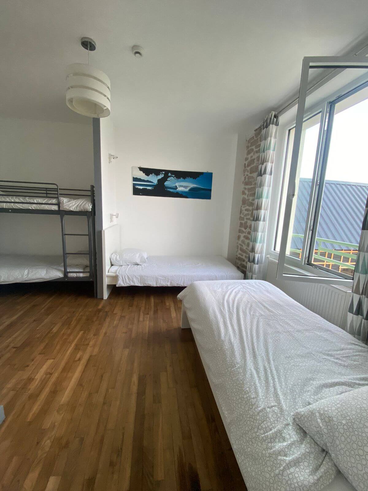 Chambre 1 : Cette grande chambre est composée de deux lits simple, d’un lit superposé et d’une salle de bain avec vue imprenable sur l’océan