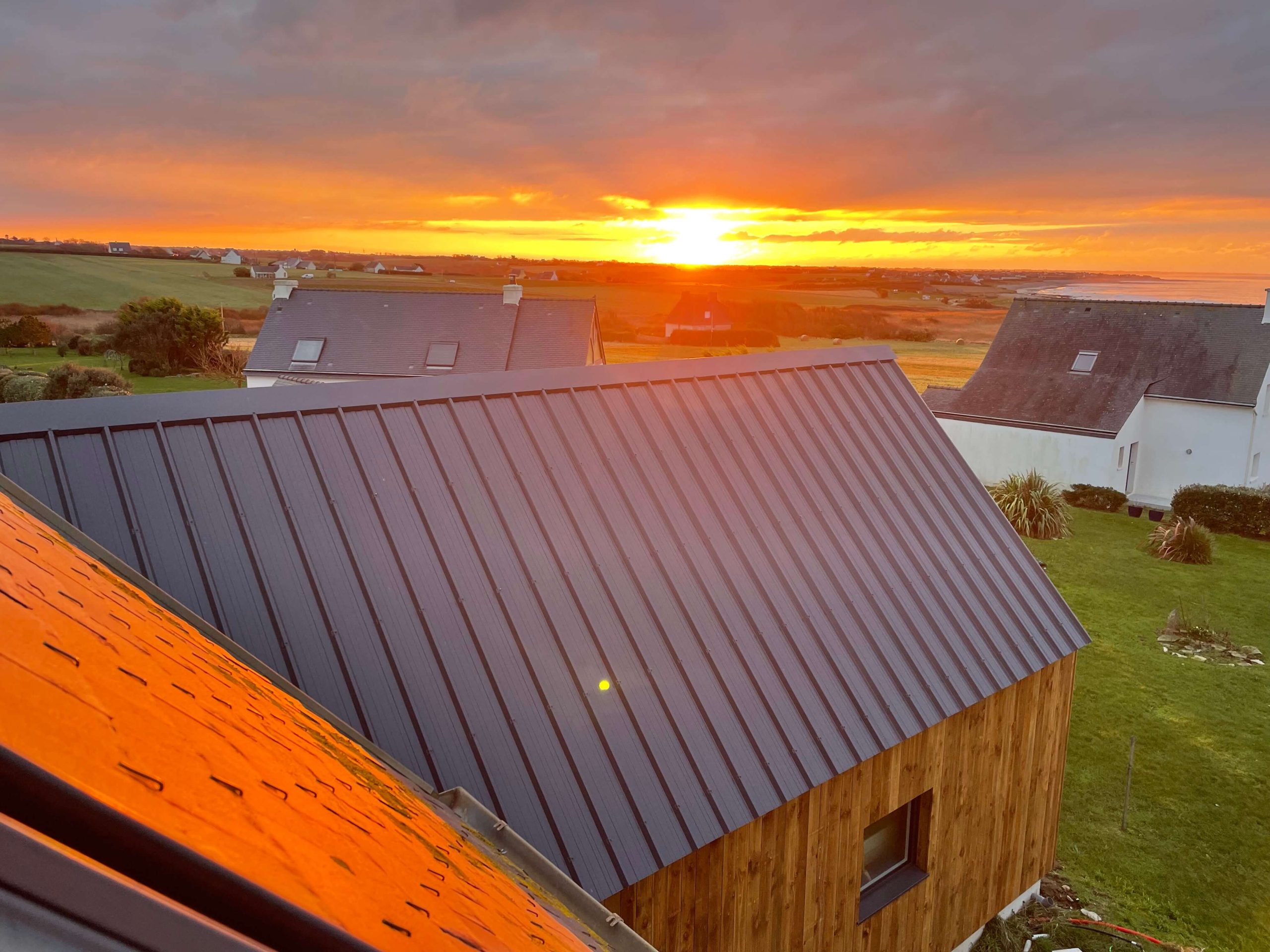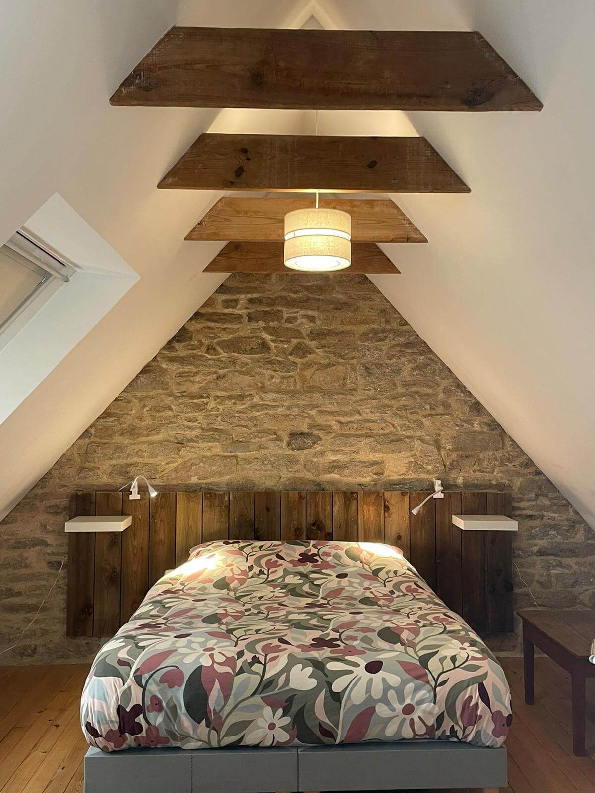 Chambre 4 : Un lit double sous les combles avec une vue imprenable sur l’océan